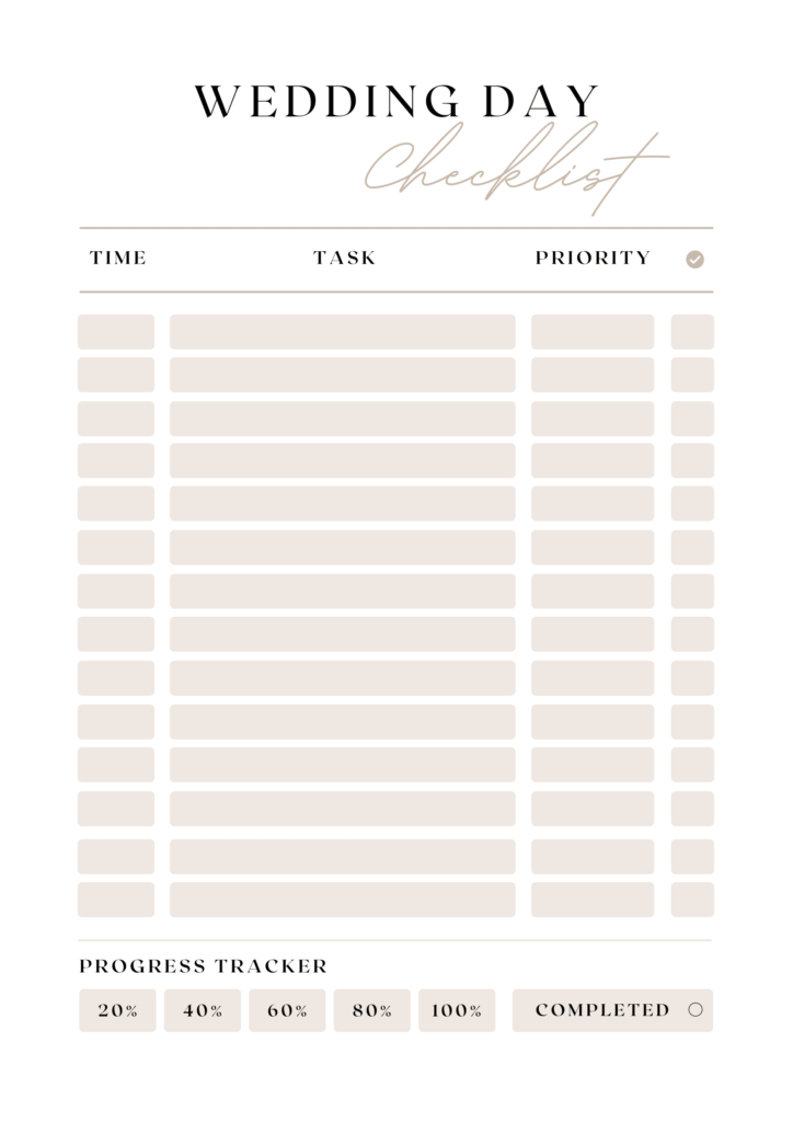 WEDDING DAY CHECKLIST