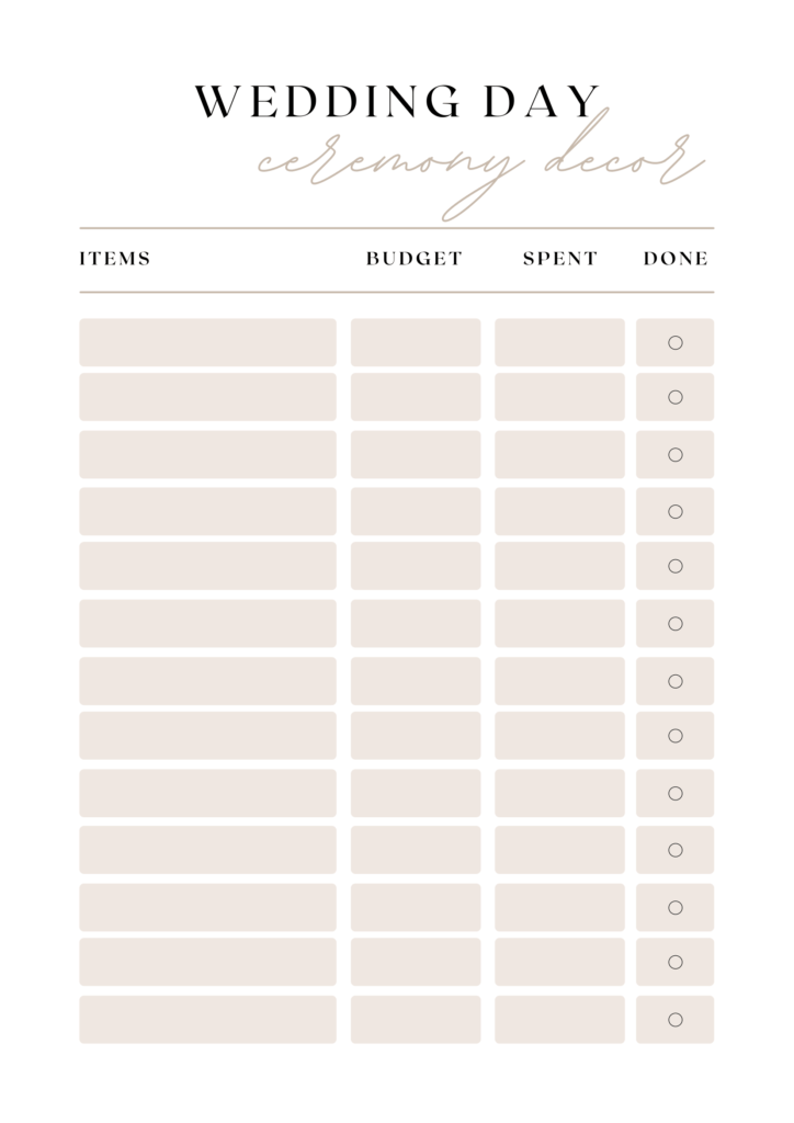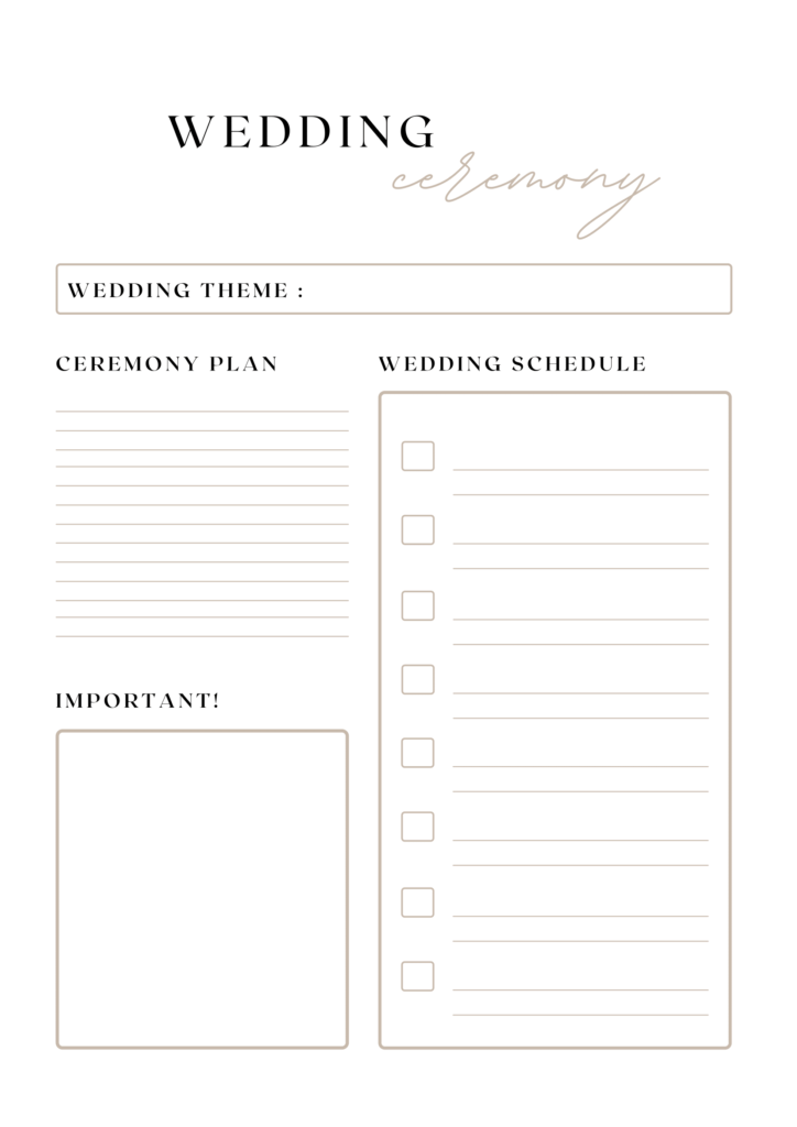 Our Wedding Planner Printable includes a comprehensive set of printable pages designed to help you manage your wedding budget, itinerary, and timeline. It covers essential aspects of wedding planning to ensure a smooth and organized process.