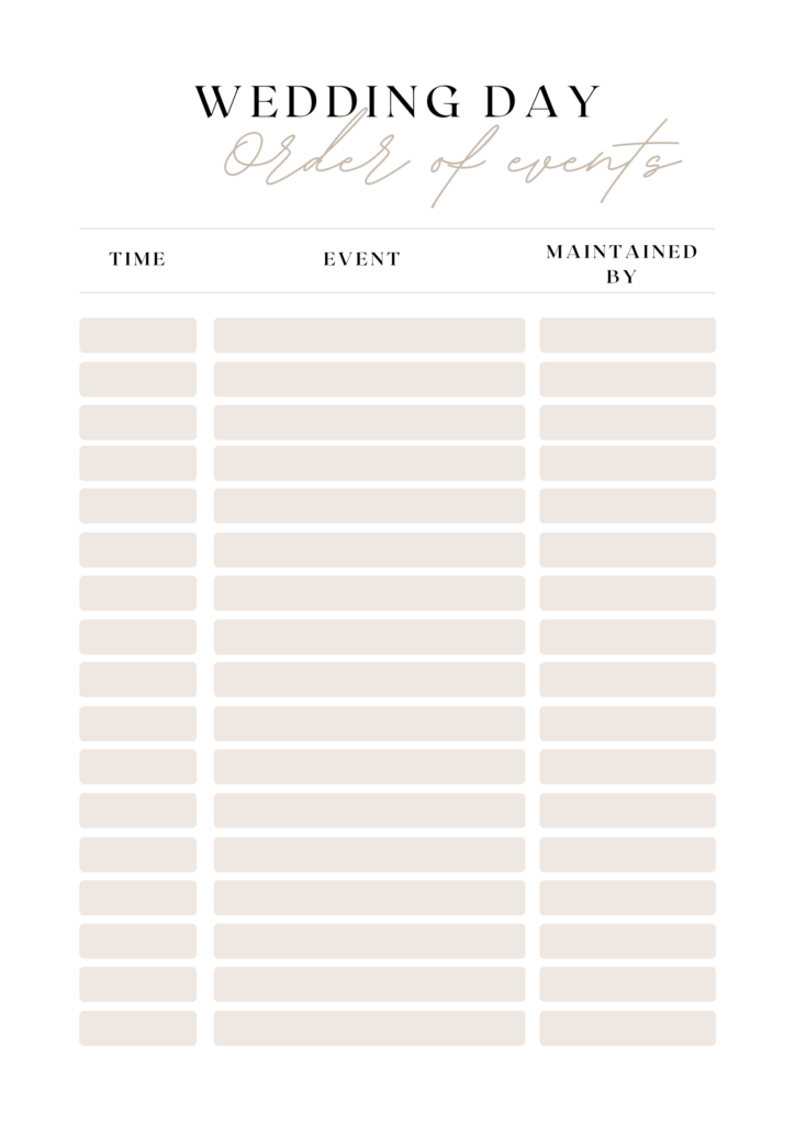 WEDDING TIMELINE