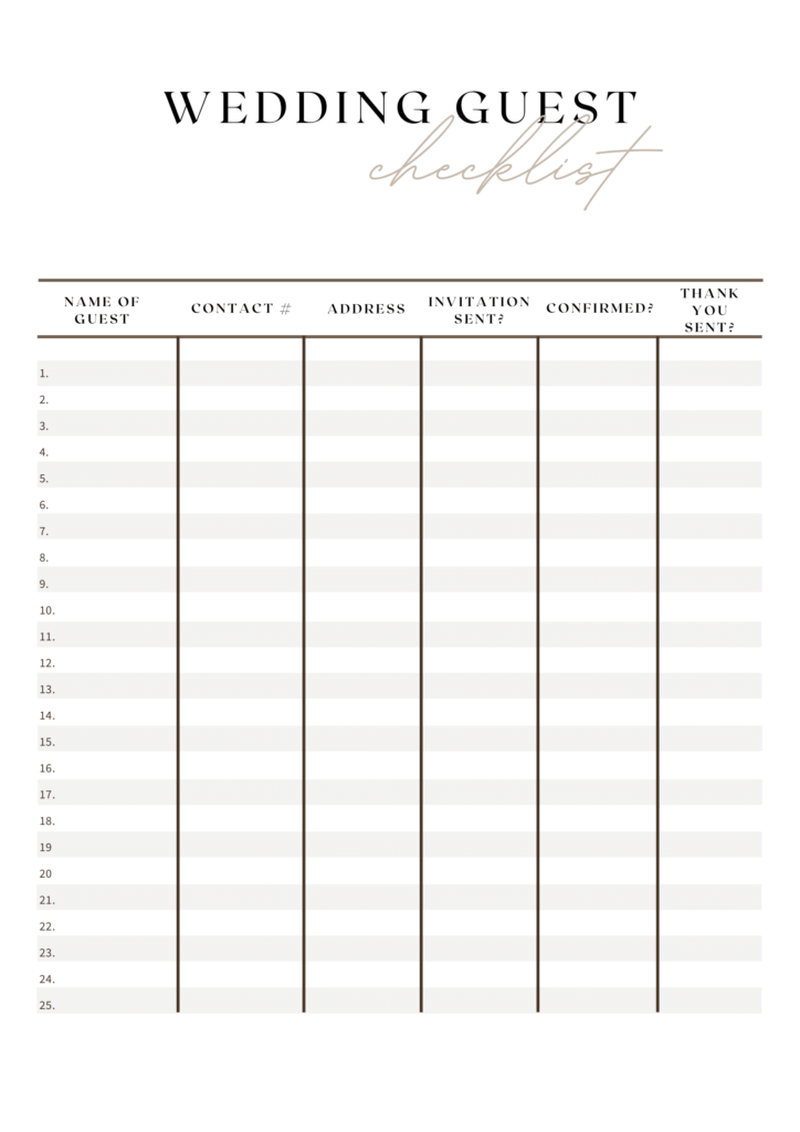 GUEST CHECKLIST