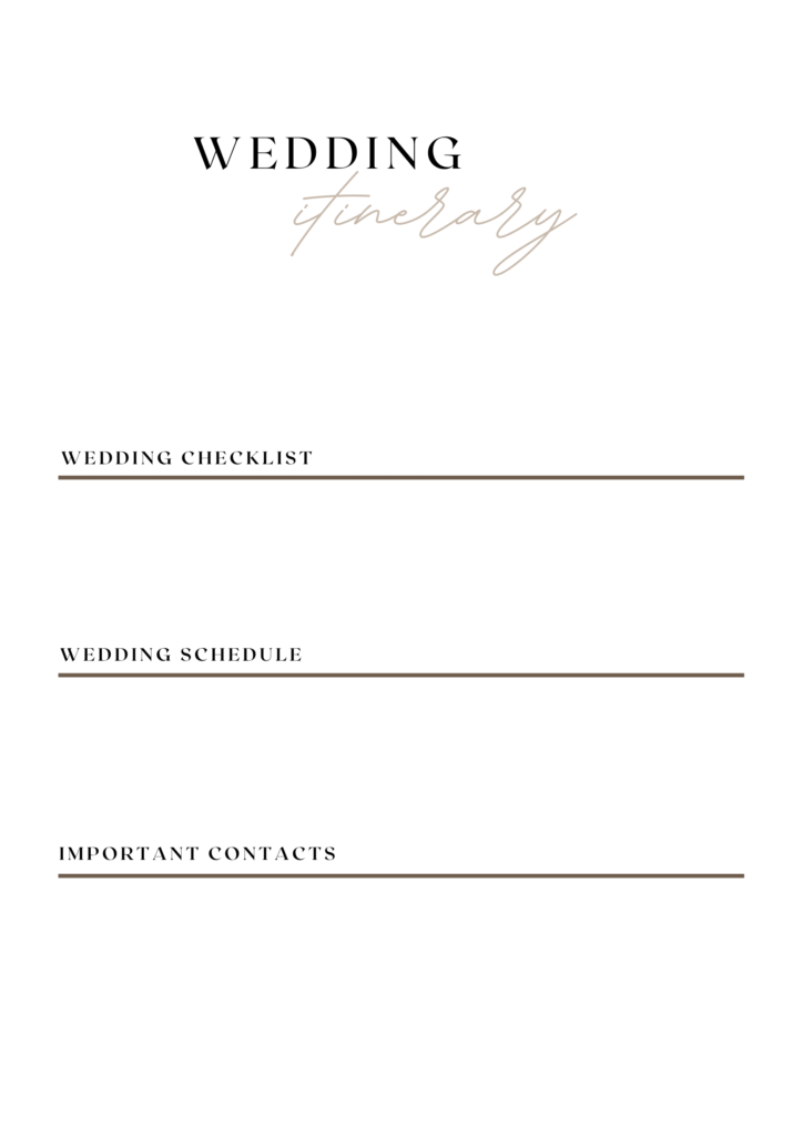 WEDDING ITINERARY